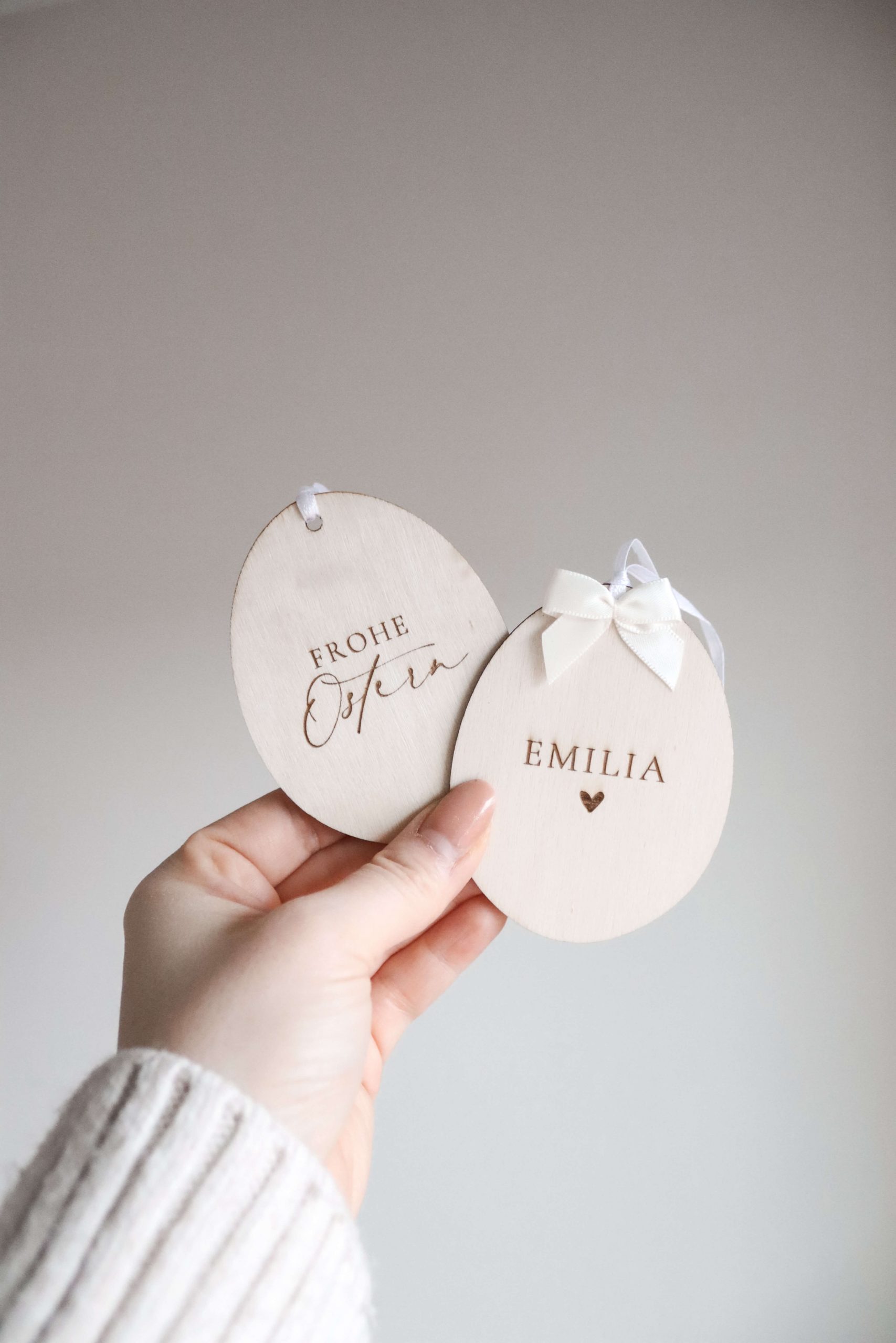 Jedes Osterei wird aus Holz gefertigt und individuell graviert – so entsteht ein persönliches Unikat, das Jahr für Jahr wieder Freude macht. Ob am Osterstrauch, an Zweigen in der Vase oder als kleines Geschenk: Die Eier setzen dezente, warme Akzente.