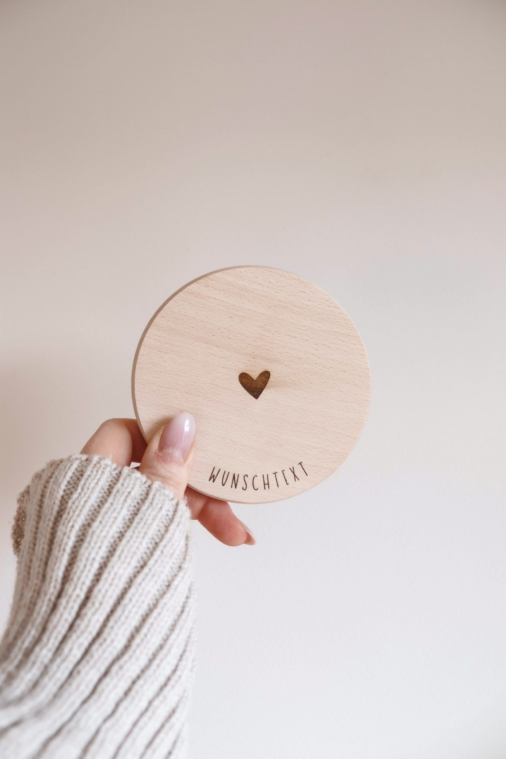 Personalisierter Untersetzer aus Buchenholz mit Wunschtext