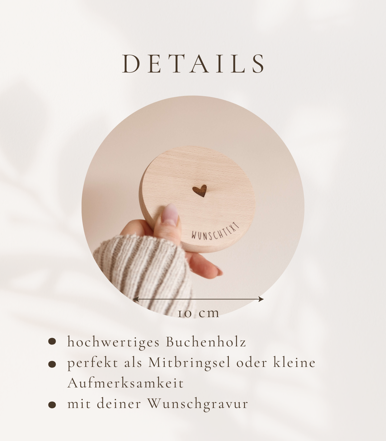 Details personalisierter Untersetzer aus Buchenholz